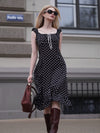 1940er Quadratischer Hals Polka Dot Rüschen Kleid