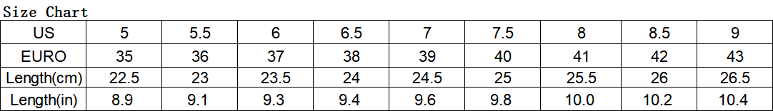 Hinweis: Bitte vergleichen Sie die Detailgrößen mit Ihren, stellen Sie sicher, dass Sie vor dem Kauf die richtige Größe wählen. Wenn Ihre Füße etwas dick und breit sind, wird empfohlen, eine größere Größe zu wählen, danke.