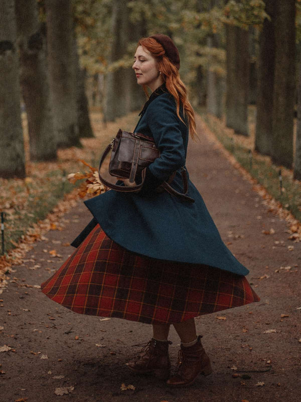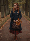 Der dunkelgrüne Vintage-Mantel aus den 1950er Jahren kann Ihnen im kalten Winter einen femininen Retro-Charme verleihen! Es ist ein Mantel, der zwischen zwei Kragenformen wechseln kann. Sie können alle goldenen Knöpfe und den schwarzen Ausschnitt, der sich um Ihren Hals legt, für Wärme und Eleganz zuknöpfen. Schwarze Spleiße am Ausschnitt und an den Bündchen verleihen dem Mantel eine Schicht, und auf beiden Seiten befinden sich praktische Taschen. Kombinieren Sie es mit unserer perlenbesetzten Blumenbrosche auf der Brust für Eleganz und Romantik! Oder entfernen Sie die Knöpfe in der ersten Reihe für einen klassischen Revers-Look und kombinieren Sie sie mit Ihrer Lieblingskette.