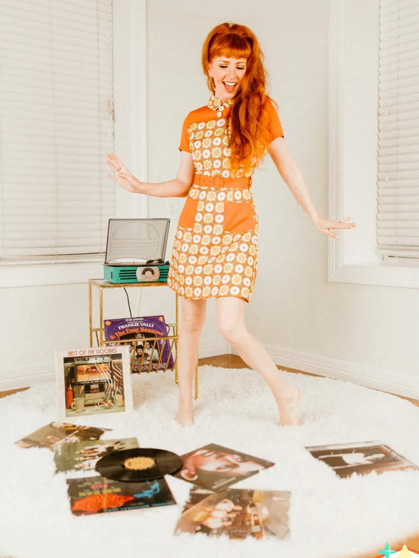 Multicolor 1960er Gänseblümchen Revers Gürtel Kleid