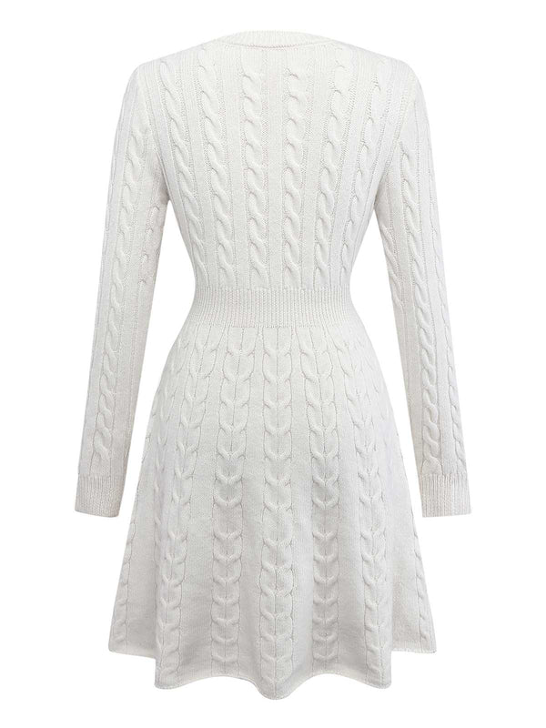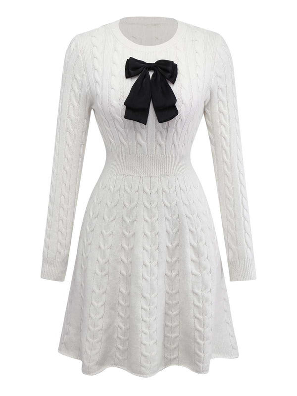 Weiß 1970er Bogen Dekor Stricken Pullover Kleid