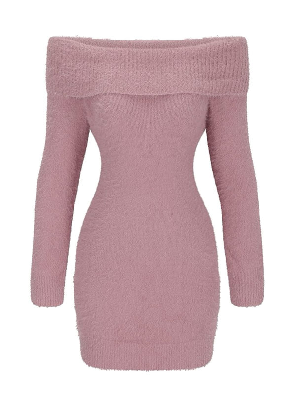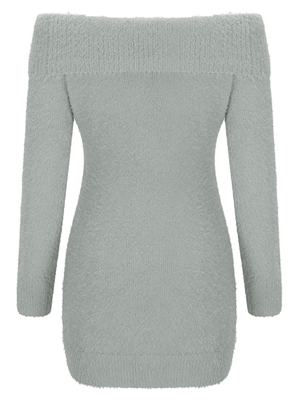 1980er Schulterfrei Mohair Lang Ärmel Kleid