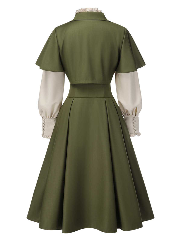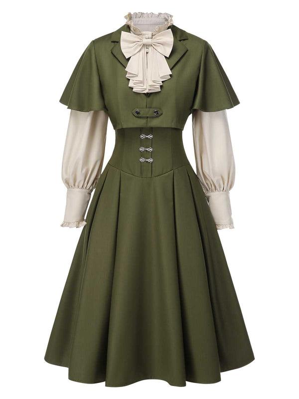 [Vorverkauf] 2PCS Grün 1950er Viktorianisch Bogen Tie Kleid & Kurzes Cape