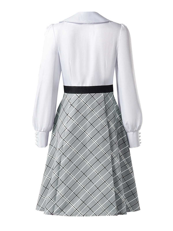 Grau 1940er Peter Pan Kragen Bogen Plaid Kleid