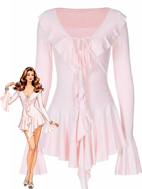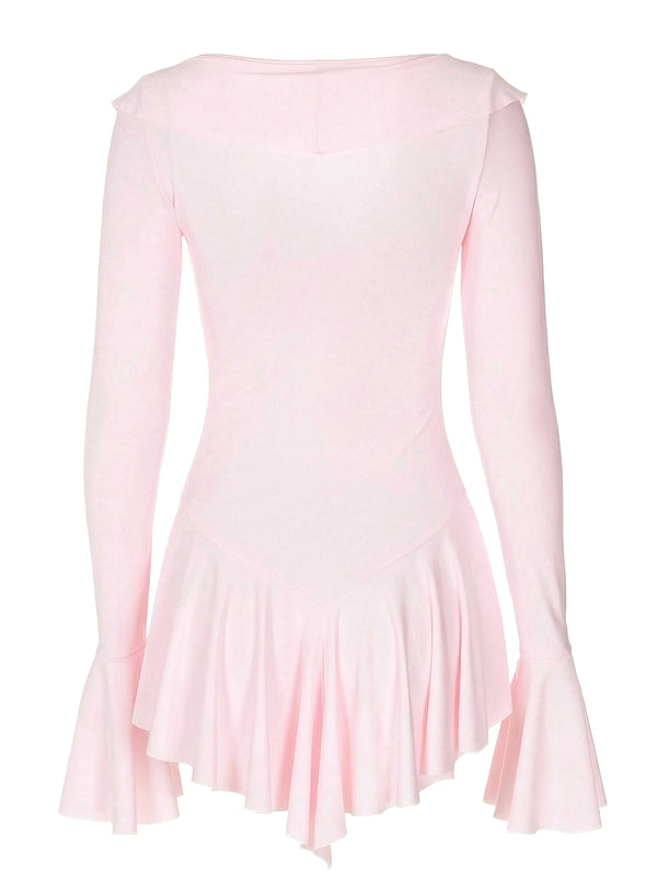 Rosa 1960er V-Ausschnitt Rüschen Ausgestellt Ärmel Kleid