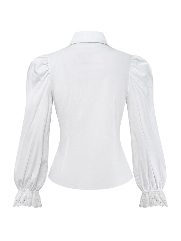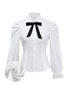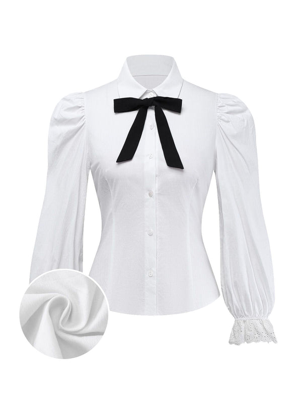 [Vorverkauf] Weiß 1960er Puffärmel Bogen Tie Bluse