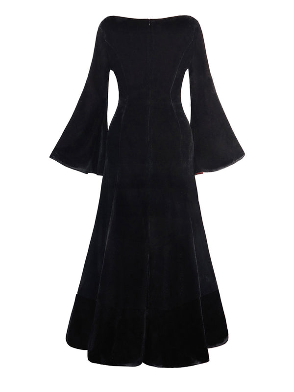 1930er Morticia Addams Samt Glockenärmel Kleid