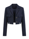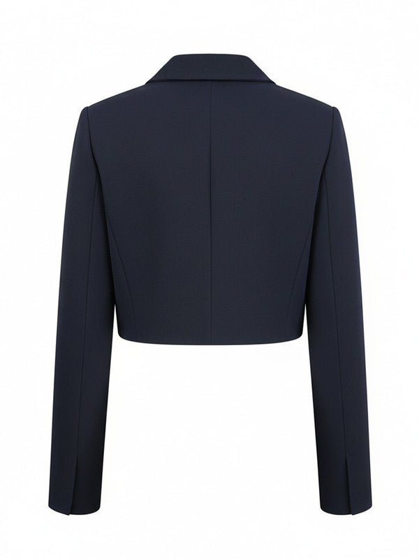[Vorverkauf] Dunkelblau 1950er Solide Kurz Blazer Jacke