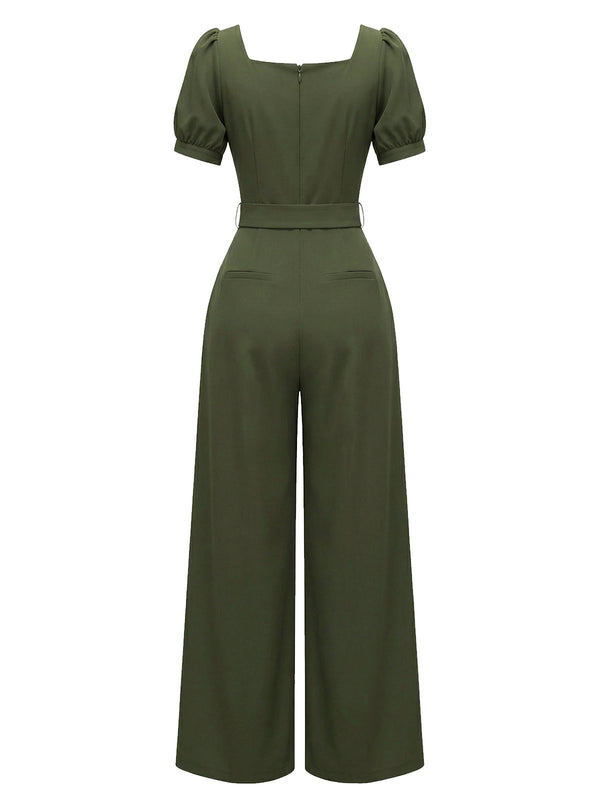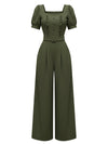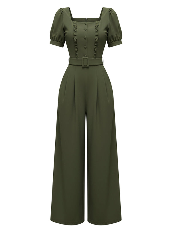 [Vorverkauf] Grün 1960er Solide Rüschen Puffärmel Jumpsuit