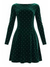 Dunkelgrün 1980er Samt Strassstein Tailliert Party Kleid