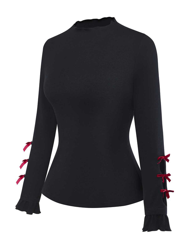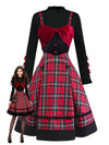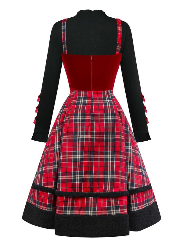 [Vorverkauf] 2PCS 1950er Samt Bogen Rollkragen Stricken Top & Plaid Kleid
