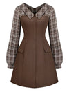 [Vorverkauf] Braun 1960er Plaid Patchwork A-Linie Kleid