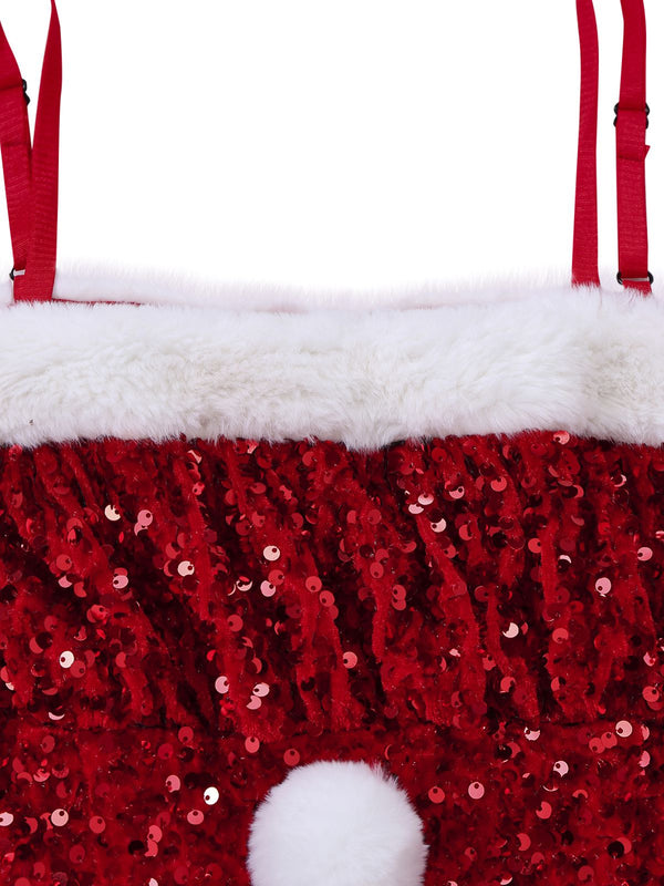 [Vorverkauf] Rot 1950er Bogen Pailletten Plüschsaum Kleid