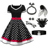 Schwarz 1950er Punkt Druck Patchwork Kleid mit Zubehör-Set