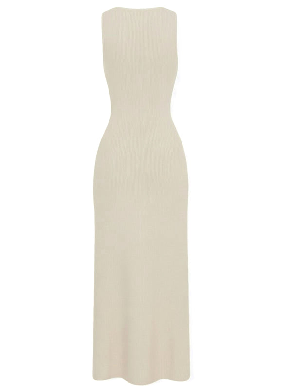 1960er Solide Ärmellos Einreihig Stricken Kleid
