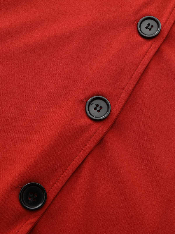 Rot 1940er Diagonal Knopf Stehkragen Mantel