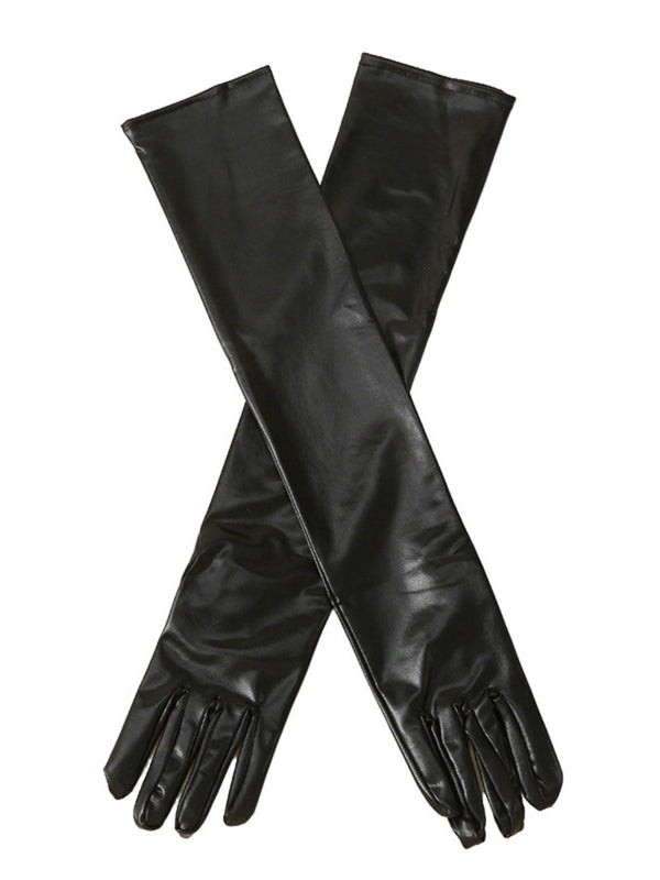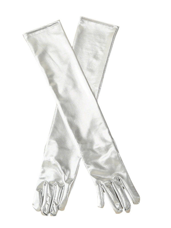 Gold Lack Leder Solide Voll Finger Handschuhe