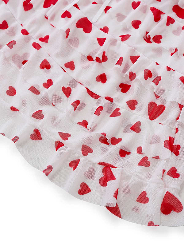 Rot 1960er Herz Rüschen Netz Slip Nachthemd