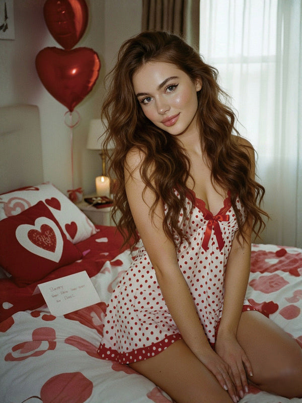 [Vorverkauf] Rot 1960er Polka Punkte Bogen Slip Nachthemd
