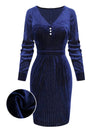 [Vorverkauf] Blau 1960er V-Ausschnitt Glitter Samt Bleistift Kleid