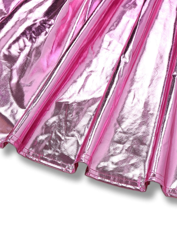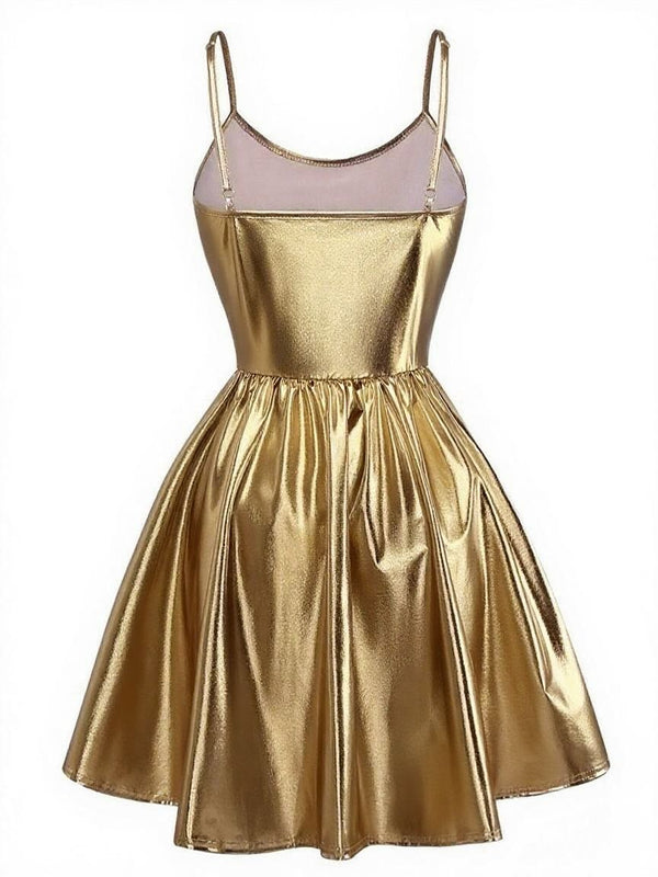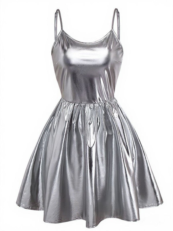 Blau 1980er Metallisch Spaghetti Träger Party Kleid