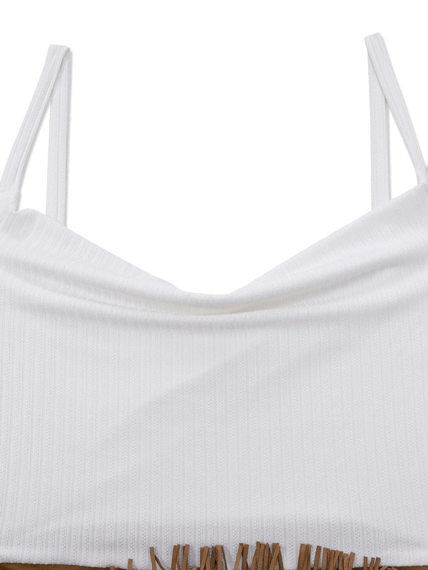 [Vorverkauf] Khaki 1970er Hoch-Tief Schlitz Fringe Kleid