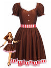 [Vorverkauf] Rot 1950er Lebkuchenmann Streifen Patchwork Kleid
