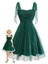 [Vorverkauf] Grün 1950er Glitzer Schulterkrawatte Gerüschtes Kleid