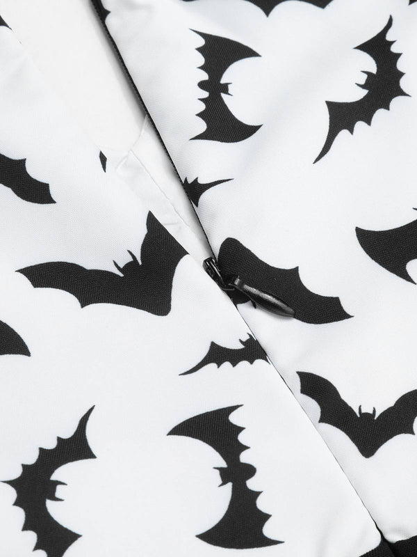 Schick mit einem gruseligen Touch! Dieser elegante Jumpsuit präsentiert sich mit einem verspielten Fledermaus-Print auf dem Oberteil und ist ideal für Halloween-Stimmung mit einem raffinierten Touch. Die hohe Taille, das weite Bein und die Knopfdetails sorgen für Flair und machen ihn zur perfekten Wahl für festlichen Spaß und gleichzeitig mühelosen Stil!