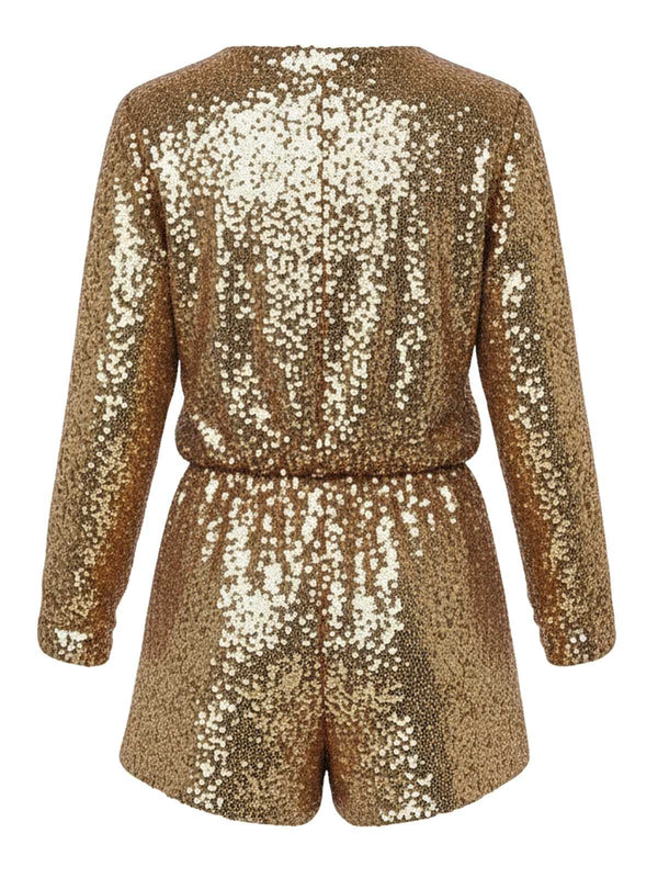 Gold 1970er V-Ausschnitt Pailletten Langarm Romper
