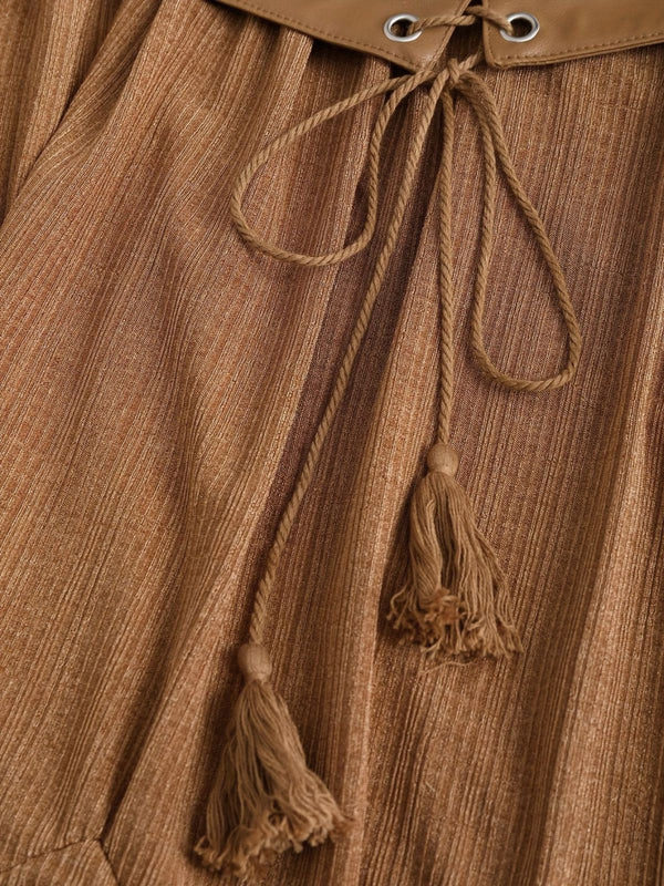 [Übergröße] 1970er Boho Binden Quaste Saum Rüschen Gerippt Kleid