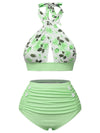 Reisen Sie mit unserem grünen Neckholder-Badeanzug im 40er-Jahre-Stil mit Blumenmuster in die Vergangenheit. Mit seinem bezaubernden Blumenmuster versprüht dieser Badeanzug Vintage-Charme und Eleganz. Der Neckholder-Ausschnitt verleiht ihm einen Hauch von Raffinesse, während die gerüschten Details für eine schmeichelhafte Passform sorgen. Perfekt für Strandausflüge oder zum Entspannen am Pool: Dieser Badeanzug vereint Retro-Stil mit modernem Komfort und ist ein Must-have für alle Vintage-Fans.
