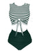 Rot & Blau 1970er Streifen Taille Binden Patchwork Badeanzug