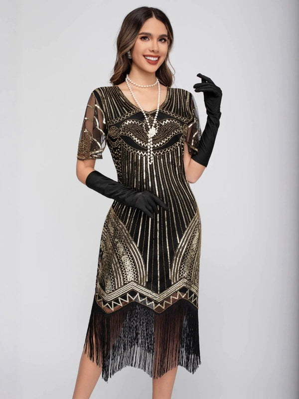1920er Rundhalsausschnitt Pailletten Tassels Charleston Kleid