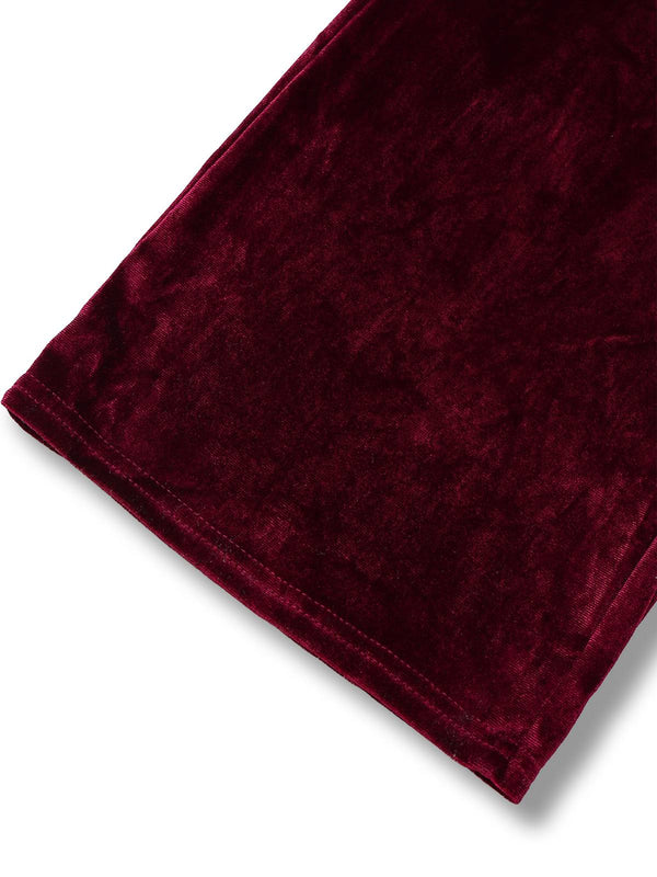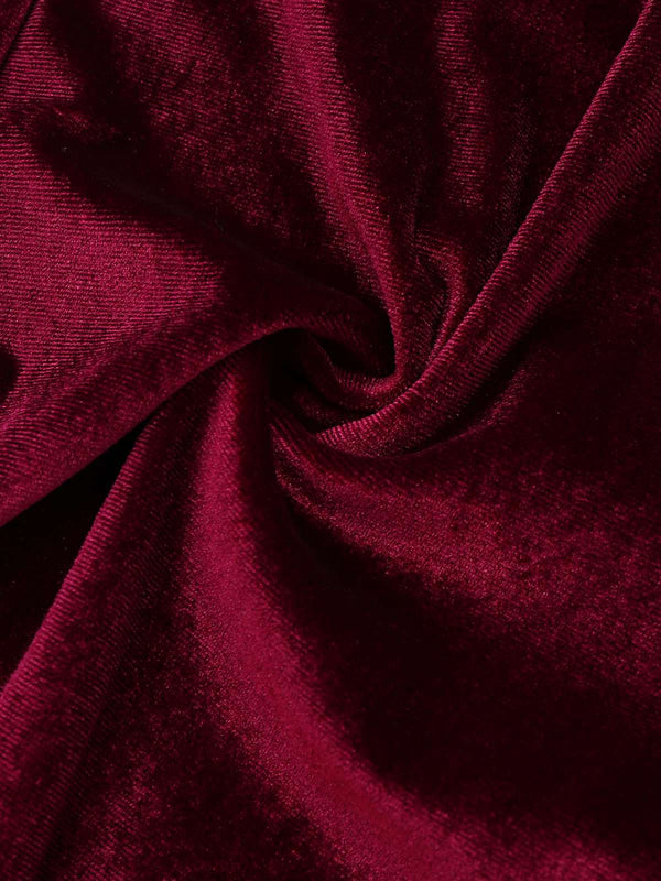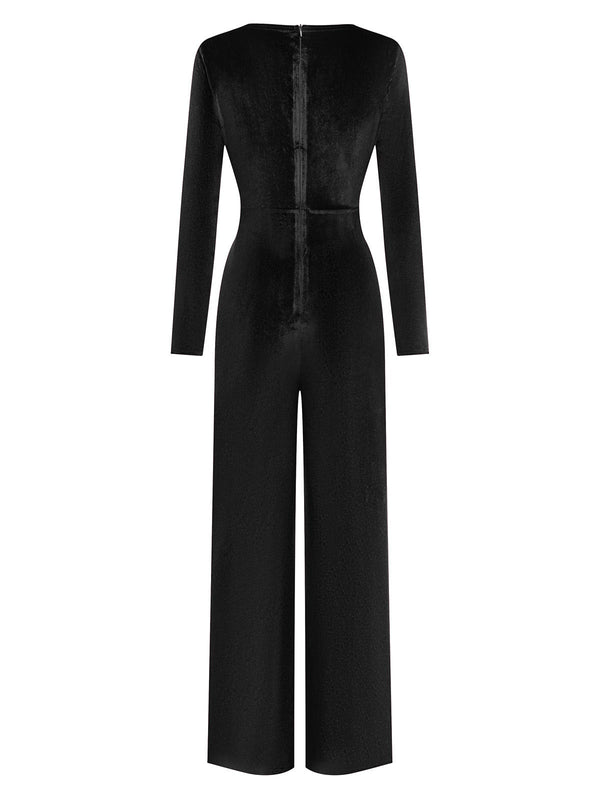 1970er Samt Tief V-Ausschnitt Langarm Jumpsuit