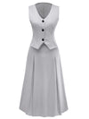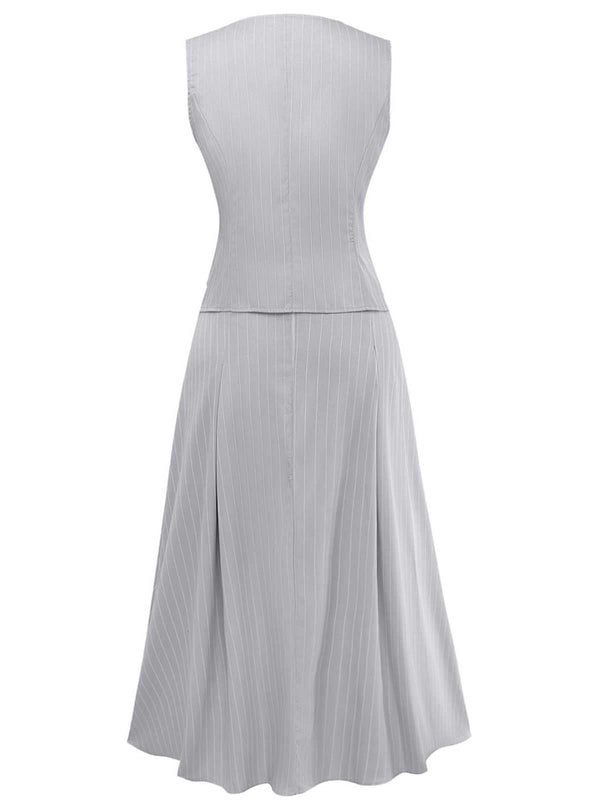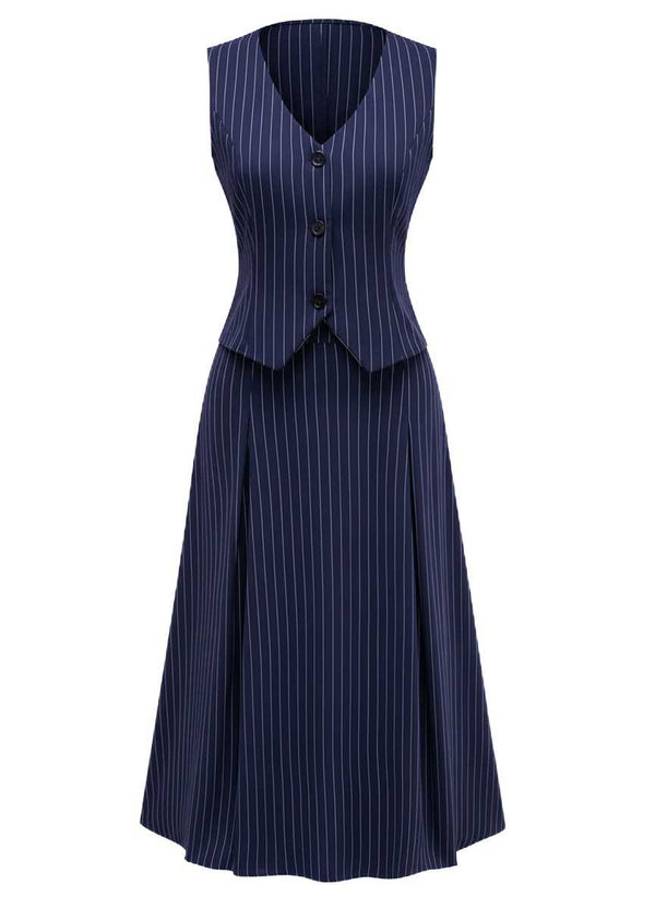 2PCS 1940er Streifen Ärmellos Weste & Midi Rock