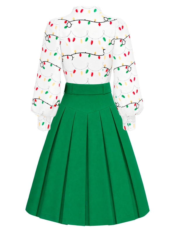 [Vorverkauf] 2PCS 1950er Weihnachtsbeleuchtung Bluse & Plissiertes Rock