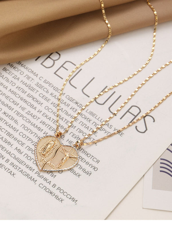 Gold Geteilt Herz Engel Anhänger Paar Halsketten Set