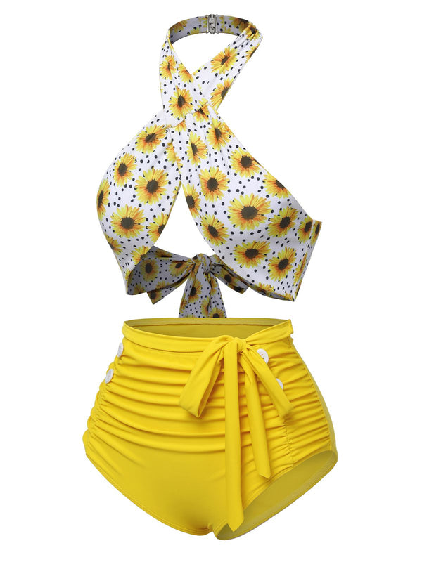 Rosa 1940er Blumen Cross Halter Badeanzug