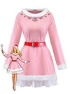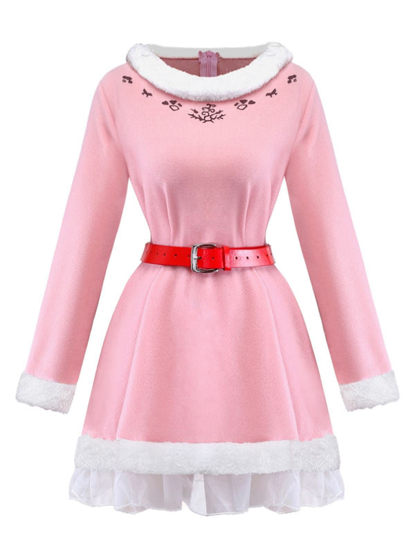 Rosa 1950er Weihnachten Elf Plüsch-Gekantet Kleid Set