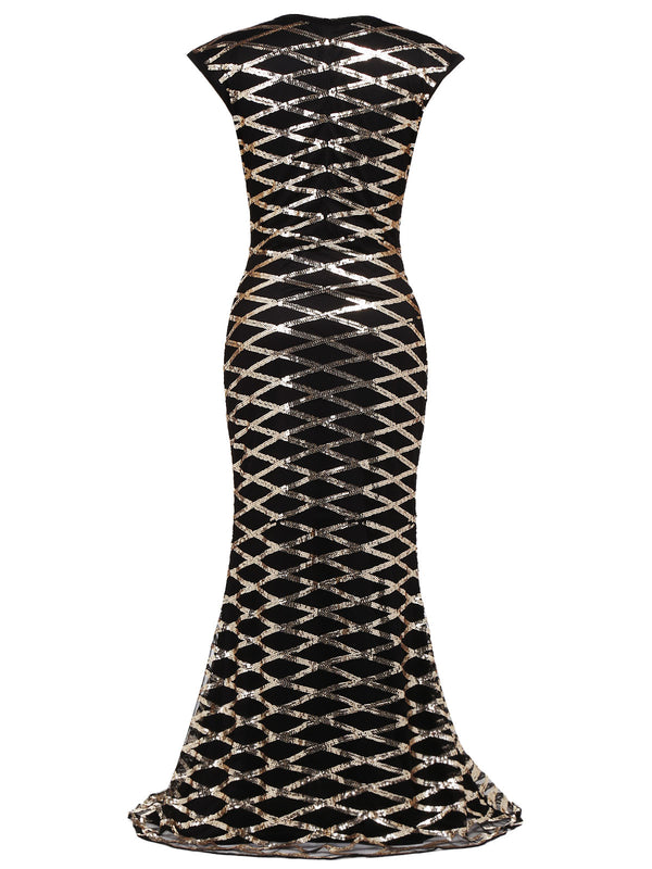 1920ER SCHWARZ PAILLETTEN MAXIKLEID