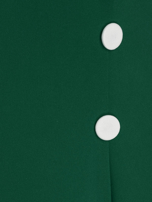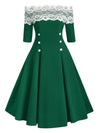 Grün 1950er Knopf Verziert Schulterfreies Kleid