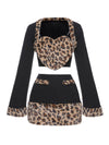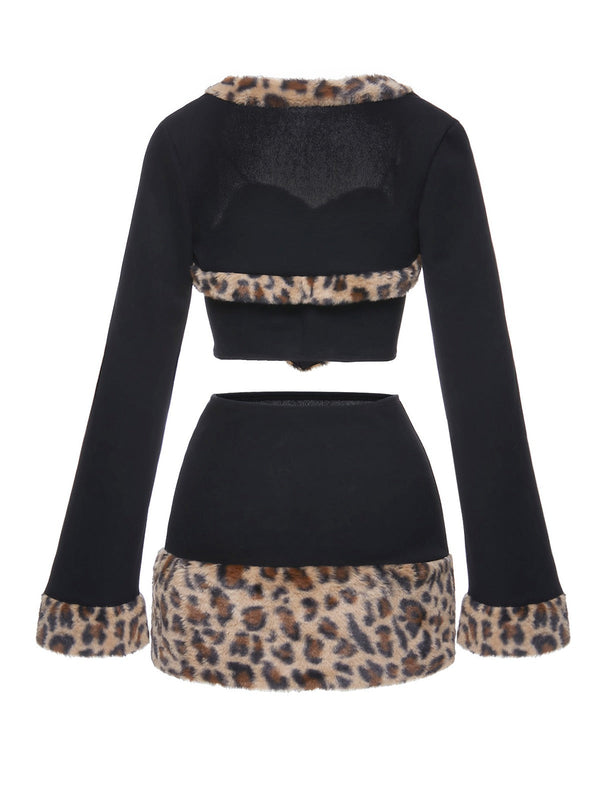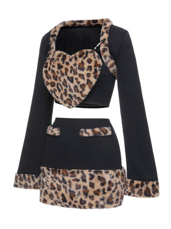 2PCS Schwarz 1960er Plüsch Leopard Herzförmiger Top & Rock & Mantel