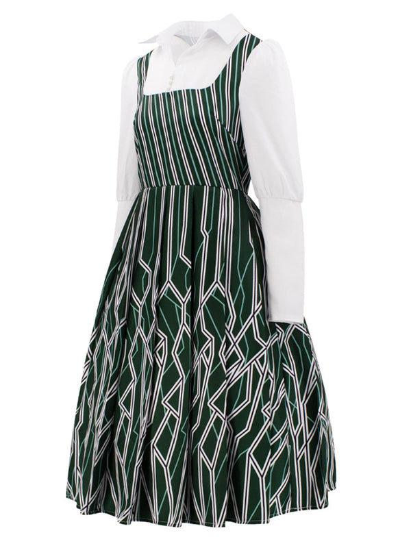 Grün 1960er Wicked-Inspiriert Elphaba Unregelmäßige Streifen Kleid