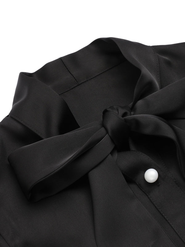 Schwarz 1950er Solide Rüschenärmel Bluse