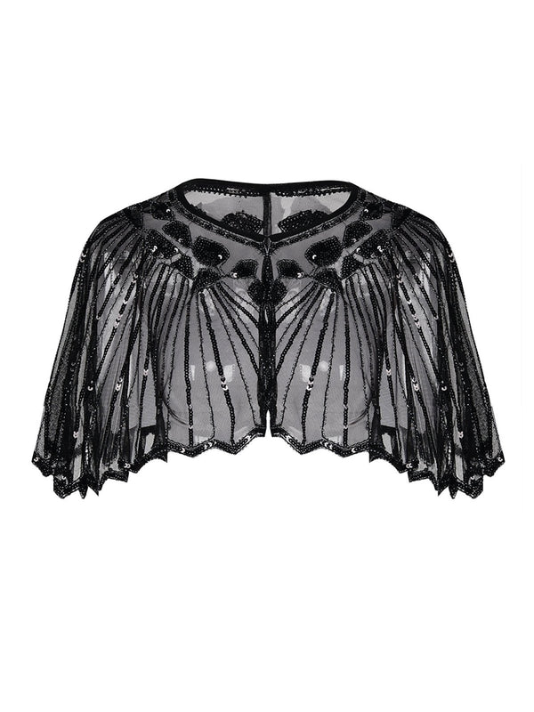 Schwarz 1920er Schal Beaded Paillette Klappe Cape