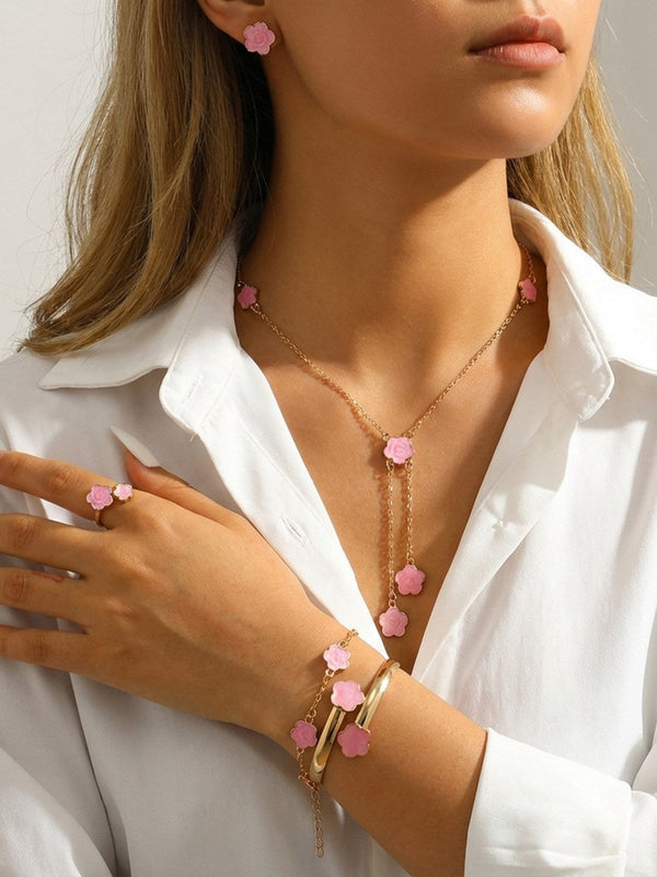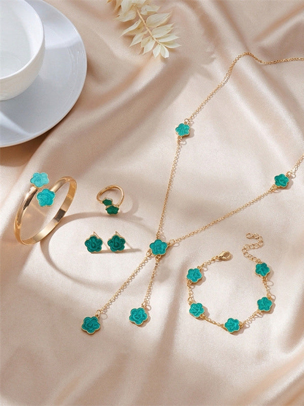 Lieferumfang: 1 x Halskette, 1 x Ring, 1 x Armband, 1 Paar x Ohrringe, 1 x Kette