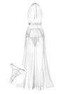Weiß 1970er Halter Sheer Spitze Schlitz Lang Nachthemd