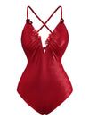 Rot 1960er Tief-V Glitzer 3D Blumen Badeanzug