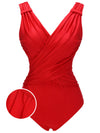 Roter 1940er V-Ausschnitt einteiliger Badeanzug